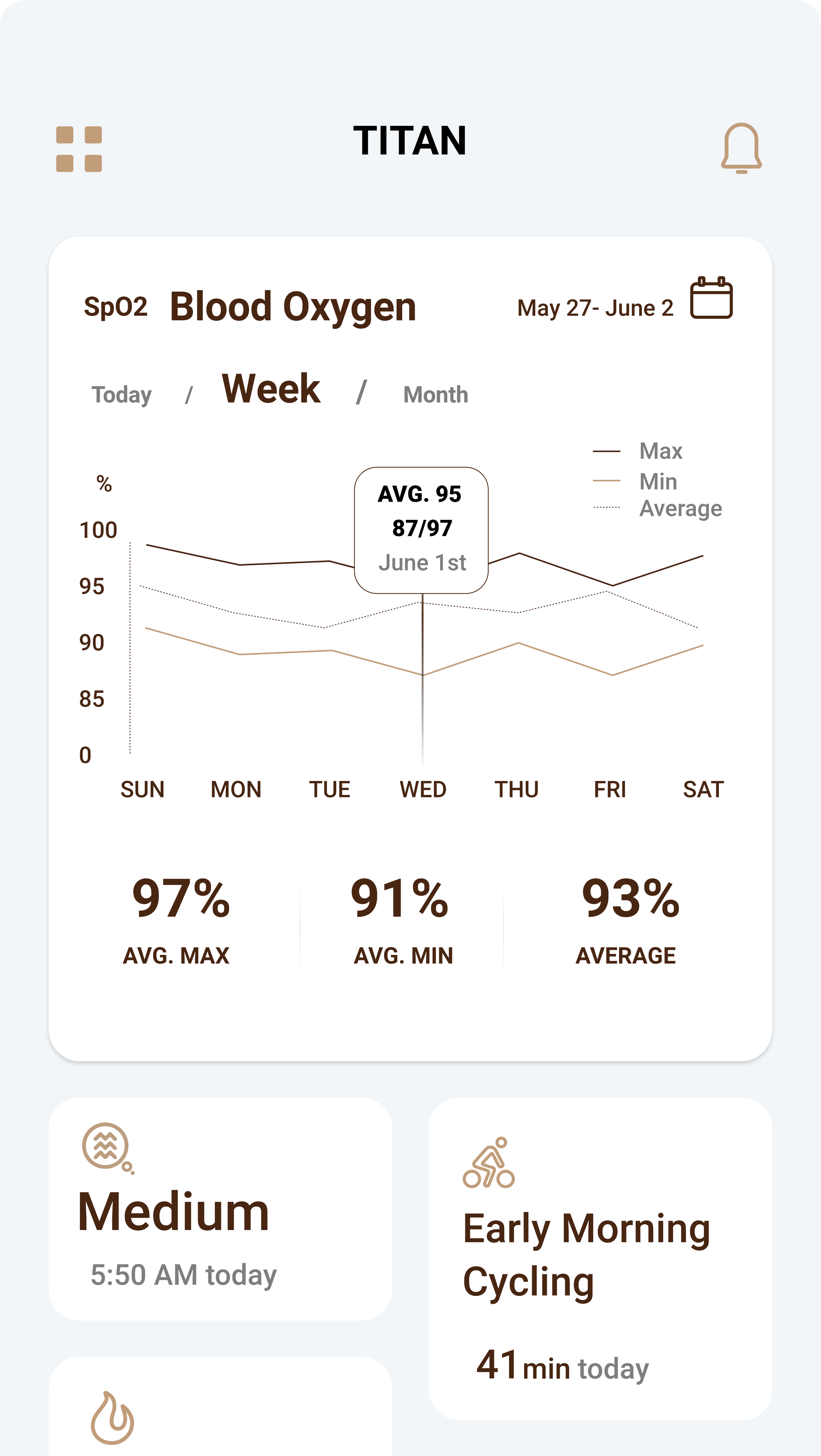 I joined the team midway through the project. I was responsible for designing the user interface and experience for Onboarding, Spo2, Vo2 max, Stress, and Women's health sections.